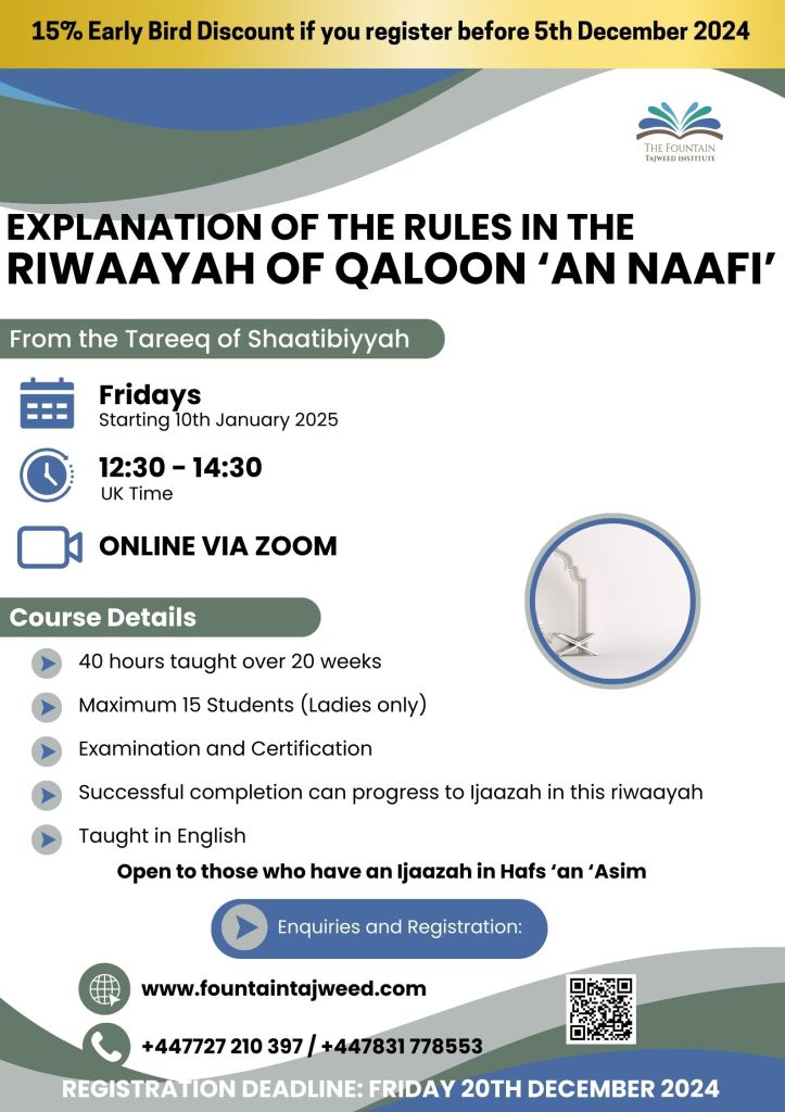 New Academic Course: Riwaayah of Qaloon ‘an Naafi’