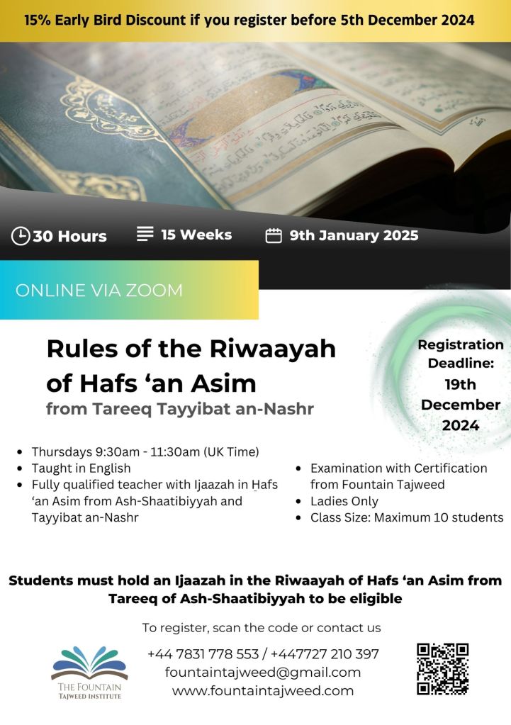 New Academic Course: Rules in the Riwaayah of Hafs ‘an Asim – English